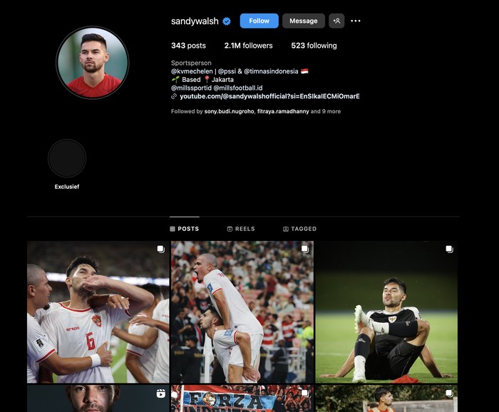 Sandy Walsh dengan 2,1 juta followers. Foto: Screenshot