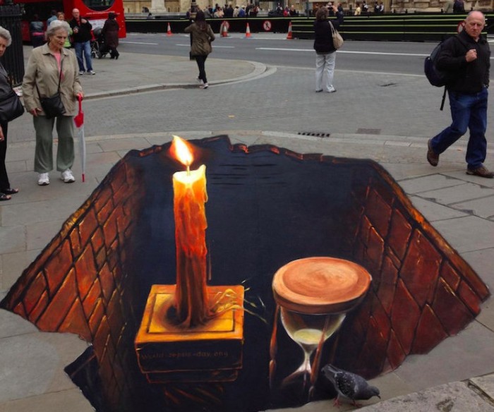 Kalau ini karya seniman Edgar Mueller. Ia sering mengikuti festival atau perlombaan membuat gambar 3 dimensi di berbagai negara. Foto: mymodernmet.
