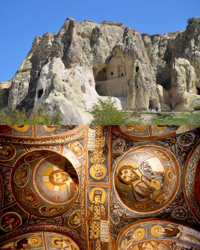 Gereja Gelap GΓΆreme, Turki. Gereja gua monastik abad ke-11 yang terkenal di Cappadocia ini, terletak di Museum Terbuka GΓΆreme, dikenal dengan lukisan dindingnya yang semarak. Foto: Boredpanda