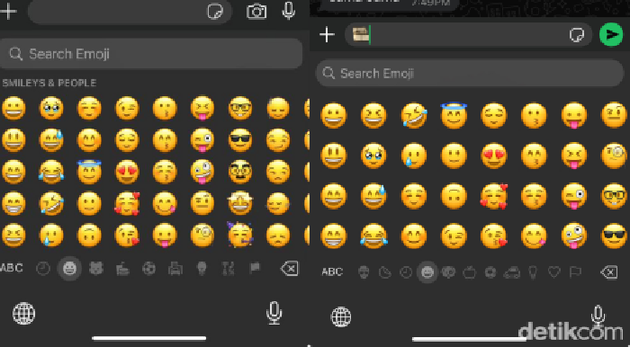 Emoji pada keyboard iOS 18.1 Beta 4 sekarang lebih besar. Perubahan ini cukup berguna karena lebih enak dibuka sekaligus diakses. Foto: Adi Fida Rahman/detikINET