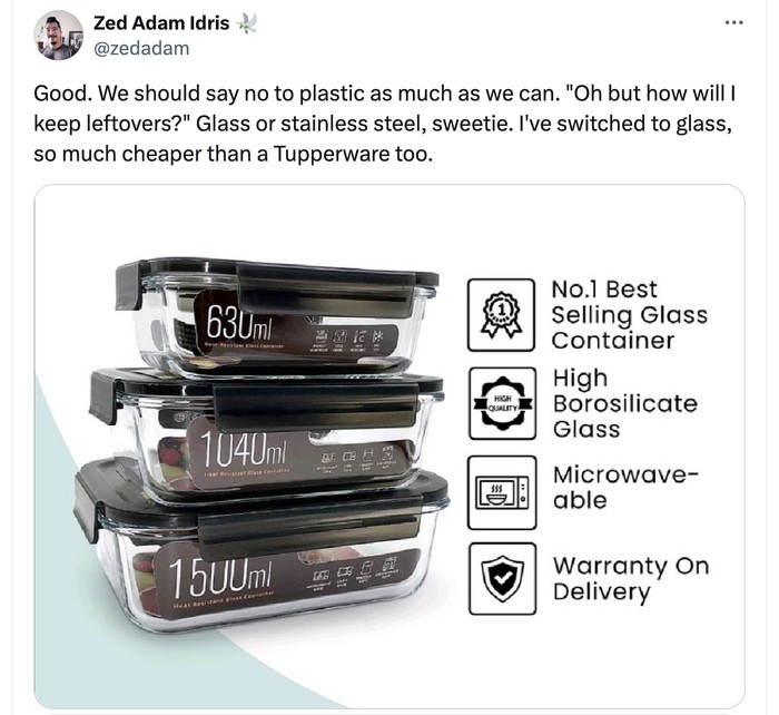 Tapi ada juga yang menilai sudah seharusnya produk plastik seperti Tupperware ditinggalkan. Foto: X.com