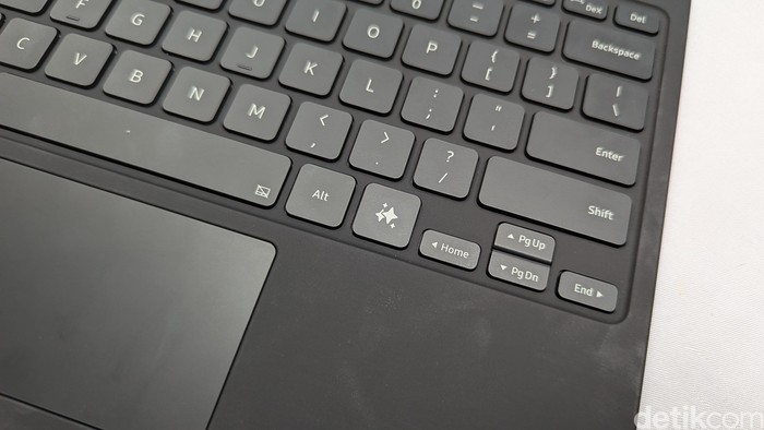 Keyboard-nya juga dilengkapi tombol khusus AI yang bisa dipakai untuk memanggil asisten pintar Bixby atau Google Gemini. Foto: Virgina Maulita Putri/detikINET