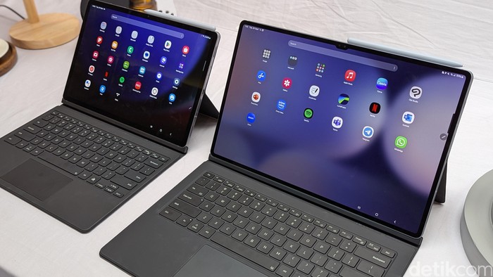 Samsung membanderol Galaxy Tab S10+ dengan harga Rp 17.999.000, sedangkan Galaxy Tab S10 Ultra seharga Rp 20.999.000. Keduanya sudah dapat dipesan secara online dan offline. Foto: Virgina Maulita Putri/detikINET