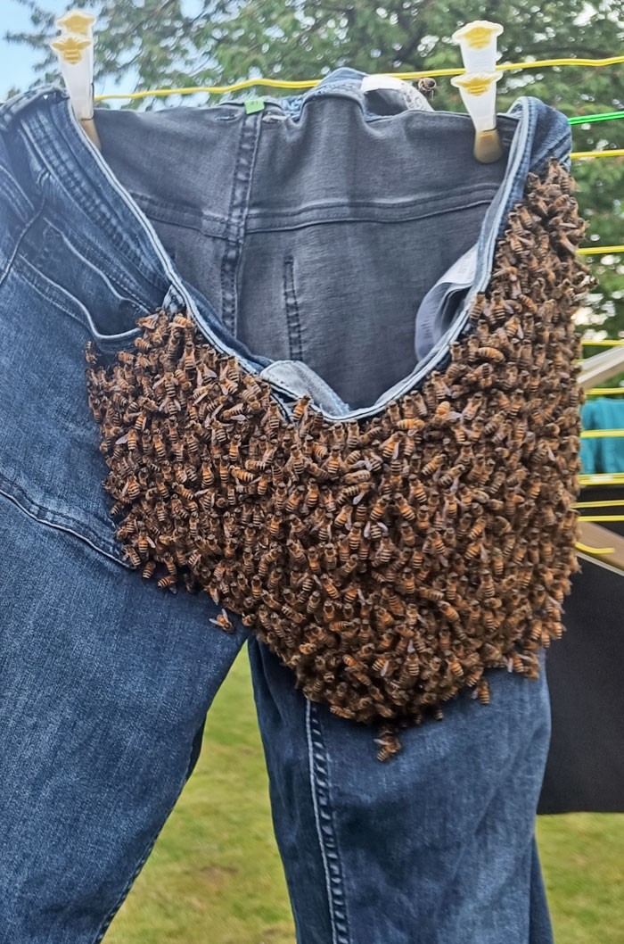Segerombolan Lebah Madu Yang Mencari Rumah Baru Memutuskan Bahwa Celana Jins Foto: Boredpanda
