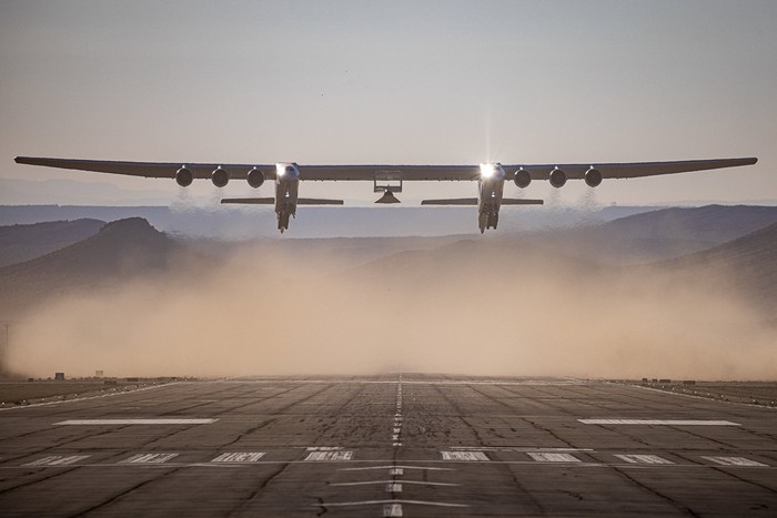 Kesuksesan penerbangan pesawat ini berkat lebar sayapnya yang lebih panjang dari lapangan sepak bola. Foto: Stratolaunch
