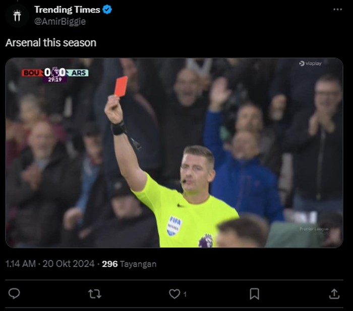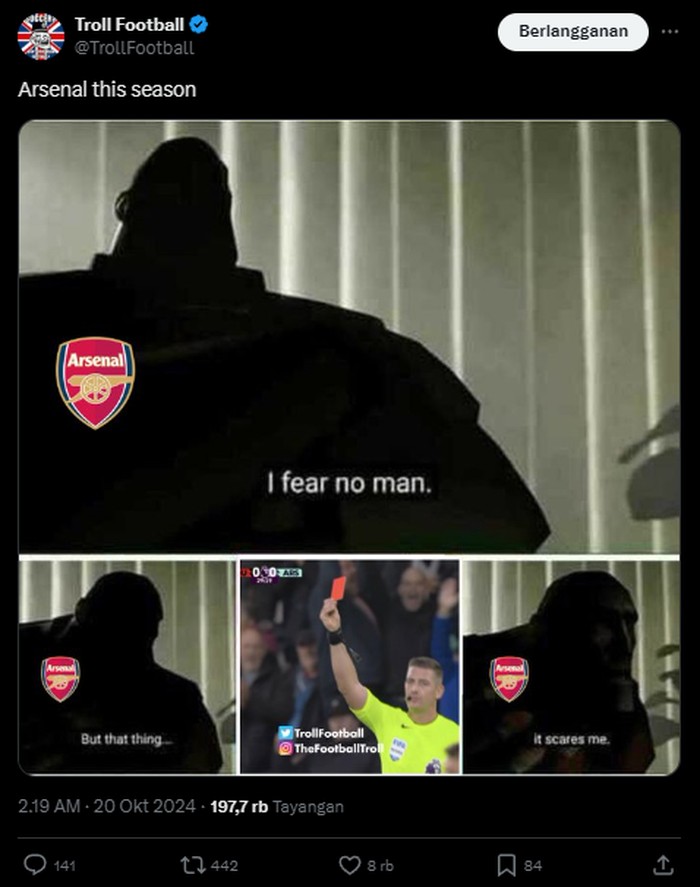 Arsenal cuma takut sama wasit nih. Foto: (Twitter).