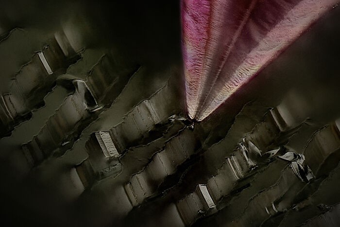 "Jarum pemutar vinil pada cakram vinil yang tergores." karya Aywaille, Liege, Belgia. Foto: Nikon Small World