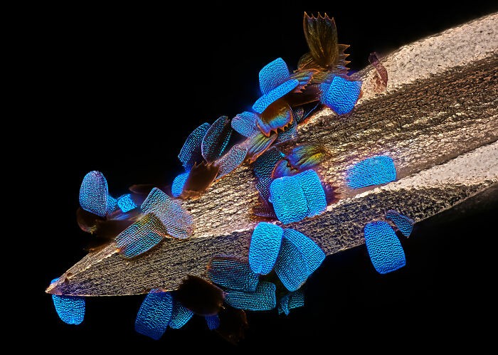 "Serbuk sari pada mata gabungan lalat." karya Hannover, Niedersachsen, Jerman Foto: Nikon Small World