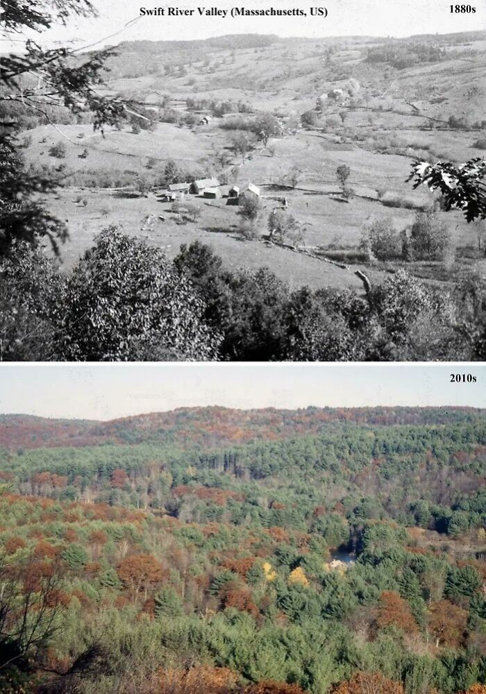 Lembah Sungai Swift (Massachusetts, Amerika Serikat) tahun 1880-an vs. tahun 2010-an Foto: Boredpanda