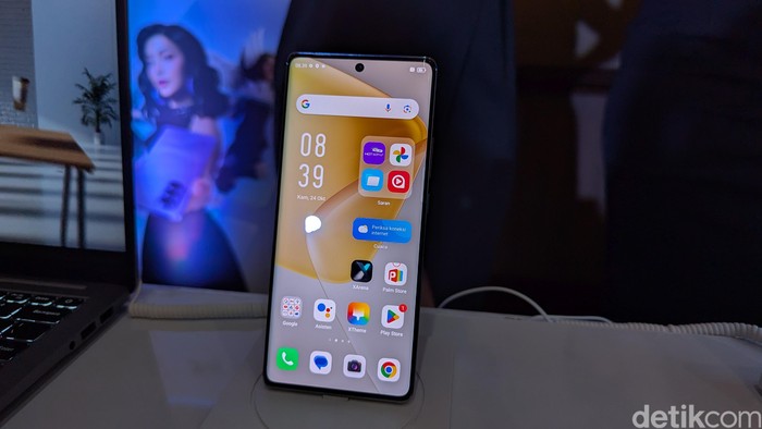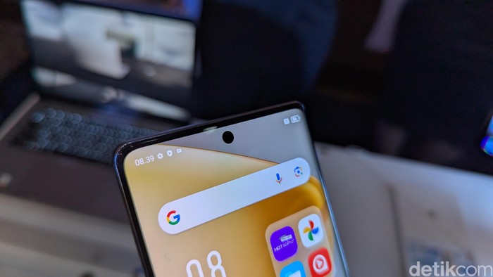 Infinix Hot 50 Pro+ ditenagai chipset MediaTek Helio G100. Kamera depannya ditempatkan di punch-hole yang berada di tengah layar. Foto: Virgina Maulita Putri/detikINET