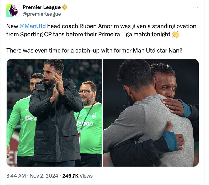 Akun resmi Manchester United di X mengumumkan Ruben Amorim resmi menjadi pelatih mereka. Foto: X.com