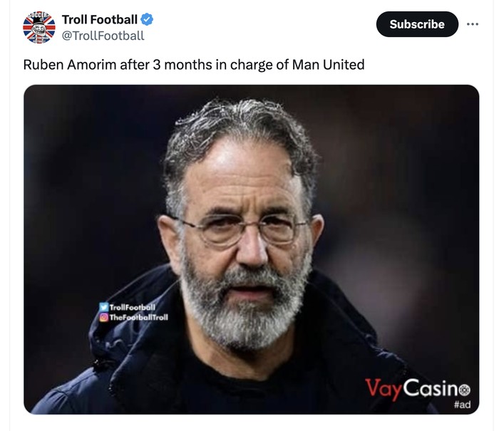 Amorim menjadi pelatih kesekian di Manchester United. Foto: X.com