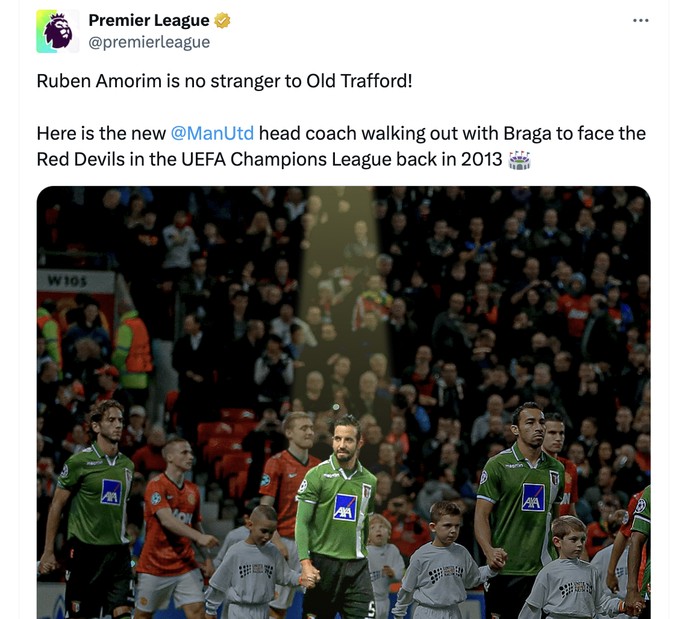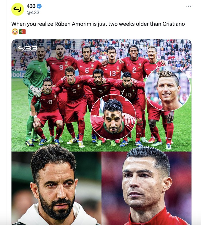 Amorim masih sangat muda, hanya beberapa minggu lebih tua dari Cristiano Ronaldo. Ia juga pernah membela Timnas Portugal. Foto: X.com
