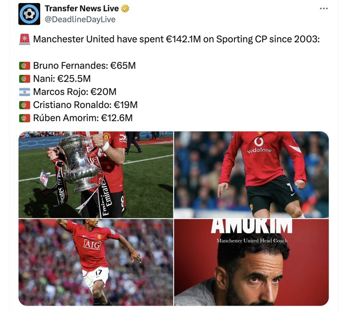 MU sudah banyak membeli pemain dari Sporting CP, kini pelatihnya juga. Foto: X.com