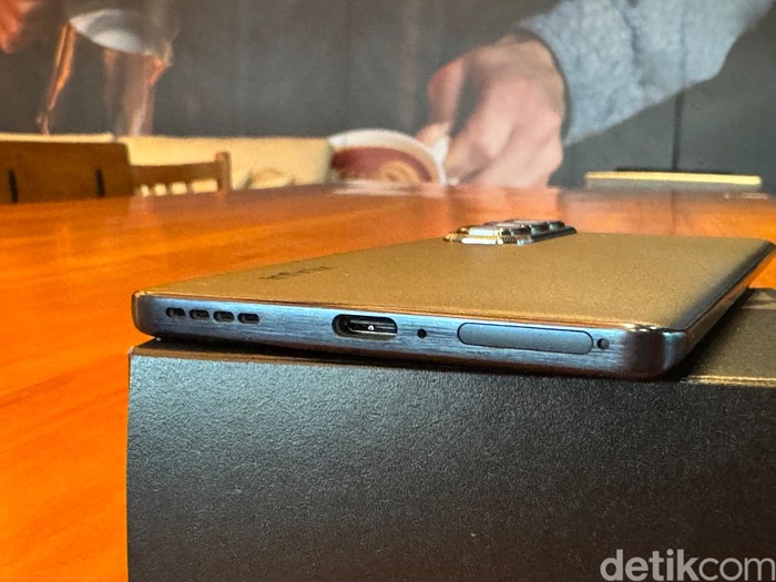 Infinix mengklaim Hot 50 Pro+ merupakan ponsel dengan desain melengkung paling tipis di dunia. Ponsel ini memiliki ketebalan 6,8 mm dan bobot 162 gram. Meski begitu, Infinix Hot 50 Pro+ tetap memiliki bodi yang tangguh berkat TitanWing Architecture. Foto: Adi Fida Rahman/detikINET