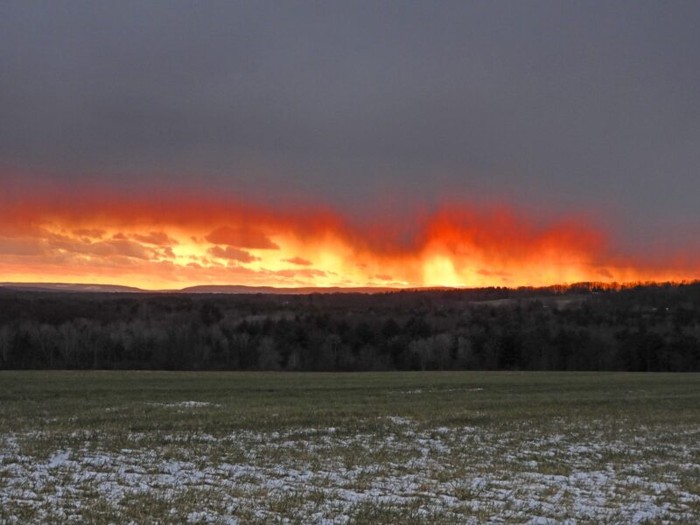 Foto ini diambil pada 13 Desember 2023 oleh Nanci McCraine saat menghadap wilayah Danau Ithaca dan Cayuga di negara bagian New York, AS. Nanci menulis: "Langit malam diterangi Matahari terbenam berwarna jingga dan tampak awan yang tampak aneh. Ternyata virga!" Foto: Nanci McCraine via Earth Sky