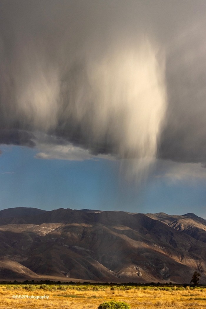 Virga biasanya terjadi di tempat-tempat yang udaranya kering, dan sering kali hangat seperti di gurun atau di dataran tinggi. Ini adalah penampakan virga di Big Pine, California, pada 21 September 2024. Foto: Ross Stone via Earth Sky