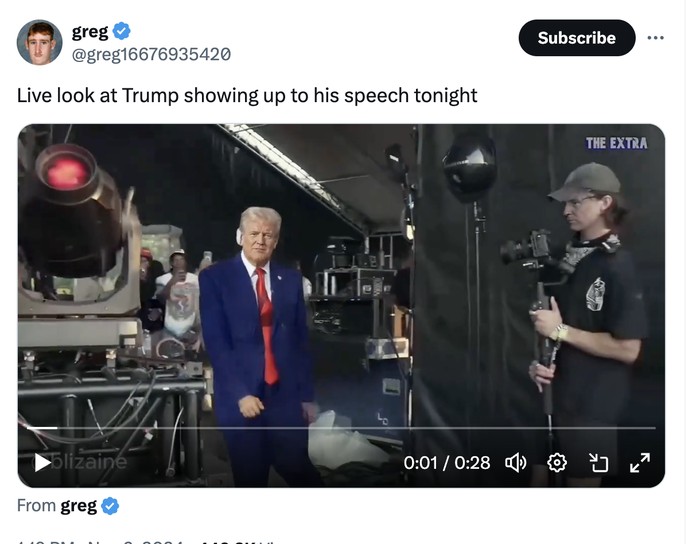Meme Trump bersemangat menyapa pendukung dengan pidato kemenangan. Foto: X.com