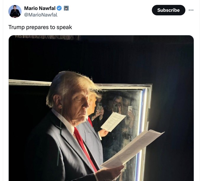Trump mempersiapkan pidato kemenangan. Foto: X.com