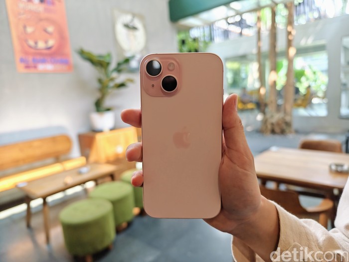 HP paling laris di dunia adalah iPhone 15. HP ini hadir dengan layar Super Retina XDR 6,1 inci, sistem kamera ganda 48MP, dan ditenagai oleh chip A16 Bionic yang bertenaga. Dilengkapi dengan fitur-fitur canggih seperti Dynamic Island, Mode Sinematik dalam 4K Dolby Vision hingga 30 fps, dan USB-C. iPhone 15 tahan air dan debu dengan rating IP68.Foto: Adi Fida Rahman/detikINET