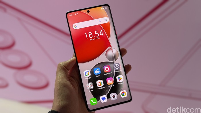 Layarnya dihiasi punch-hole yang diisi kamera selfie 32 MP. Foto: Virgina Maulita Putri/detikINET