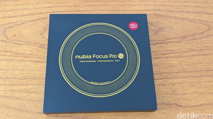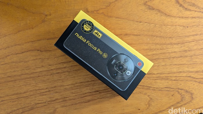 Ini kotak kemasan Nubia Focus Pro 5G yang didominasi warna hitam dan kuning. Foto: Virgina Maulita Putri/detikINET