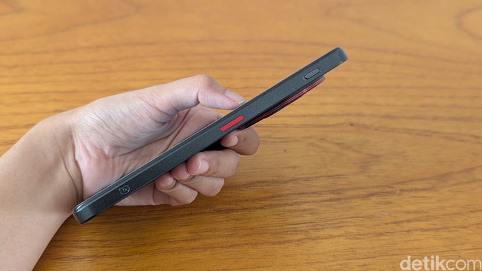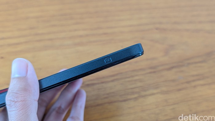 Di sisi kanan ponsel terdapat Capture Button untuk mengambil foto, mirip seperti tombol Camera Control yang ada di iPhone 16 series. Foto: Virgina Maulita Putri/detikINET