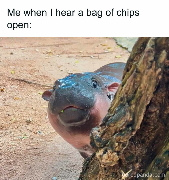 Reaksi ketika mendengar ada yang buka kripik.Β Foto: Boredpanda