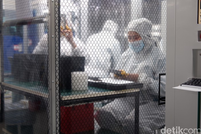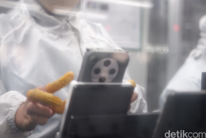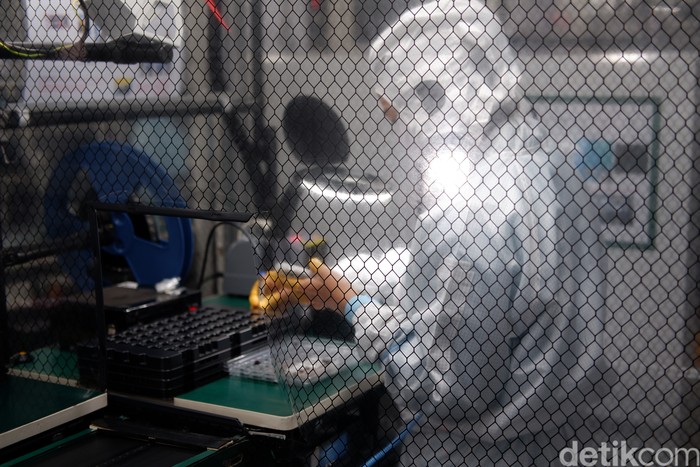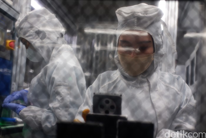 Pemasangan komponen kamera di area bebas debu. Foto: Adi Fida Rahman/detikINET