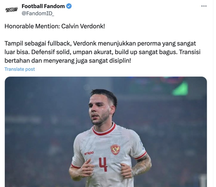 Penampilan Calvin Verdonk juga mendapatkan banyak pujian. Foto: X.com