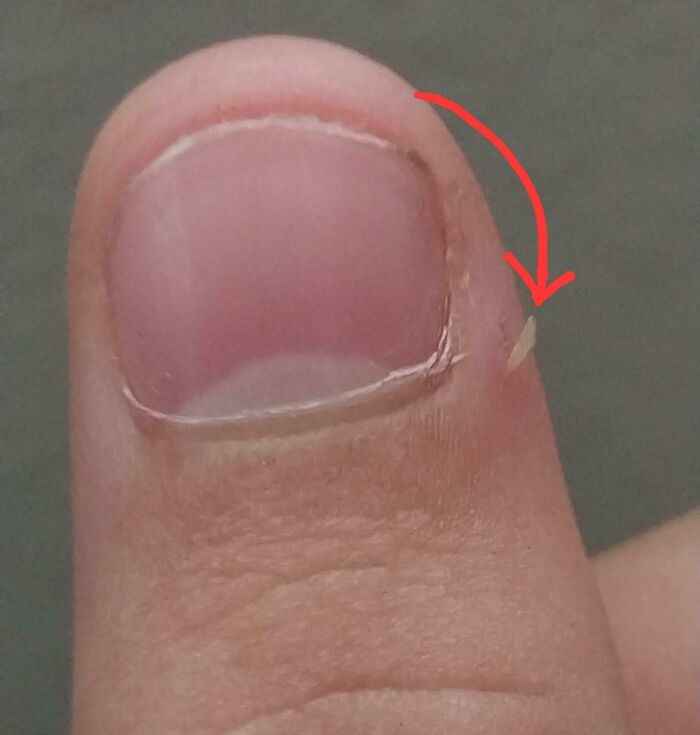 Keselnya saat ditarik biar lepas, eh malah terkelupas lebih panjang lagi. Ingat, pakai gunting kuku ya kalau kalian mengalami hal seperti ini. Foto: (Bored Panda).