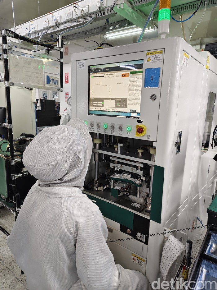 Lini produksi iQOO 13 juga memiliki beberapa bilik steril untuk memastikan pemasangan sejumlah komponen penting tidak diganggu debu atau partikel kecil lainnya. Foto: Virgina Maulita Putri/detikINET