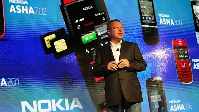 "Kami tidak berada dalam situasi di mana kami mempertimbangkan sesuatu selain Windows Phone dikombinasi dengan apa yang kami kerjakan dengan Asha (ponsel murah Nokia di masa silam)," sebut Elop. Foto: Getty Images