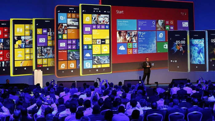 Stephen Elop pun gencar mempromosikan ponsel Nokia dengan Windows Phone. "Ada kesempatan dengan menciptakan ekosistem ketiga. Dan ini akan menjadi modal kami untuk maju. Dengan Microsoft dan Windows Phone, Nokia punya kesempatan untuk membuat nama dan perangkat mereka sendiri ketimbang harus mengikut aturan Android," kata Elop. Foto: Getty Images
