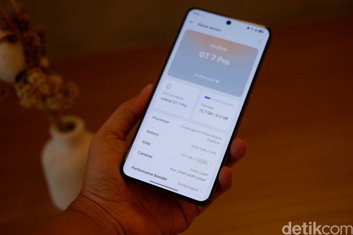 Realme GT 7 Pro disokong chipset Snapdragon 8 Elite dengan RAM 12 GB. Foto: Adi Fida Rahman/detikINET