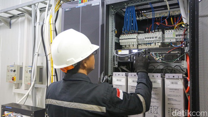 Teknisi Palapa Ring Paket Tengah bekerja di Terminal Station Palapa Ring Bakti Komdigi di Wawonii, Konawe Kepulauan, Sulawesi Tenggara, Senin (25/11/2024).