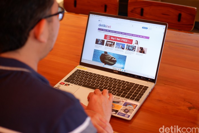 Tecno Megabook K16S menjalankan Windows 11 dan dibanderol Rp 5.999.000. Foto: Adi FIda Rahman/detikINET