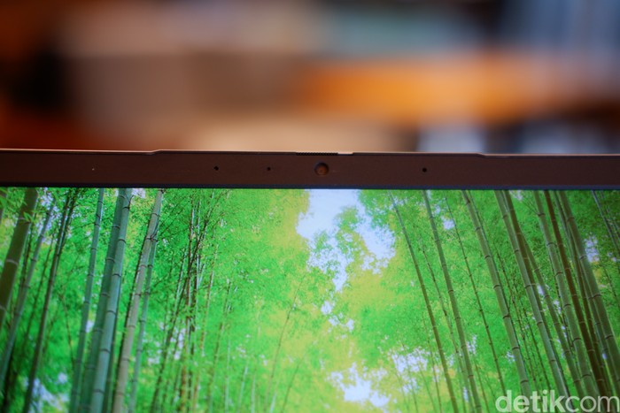 Untuk penggunaan sehari-hari, laptop ini juga mendukung konferensi AI dengan kamera 1MP yang telah didukung dengan Privacy Camera Shutter yang berfungsi untuk membuka dan menutup kamera. Foto: Adi FIda Rahman/detikINET