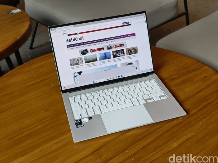 Zenbook S 14 OLED memiliki bobot sekitar 1,3 kg, sehingga menjadikan pilihan tepat bagi kamu yang sering bekerja di luar ruangan atau bepergian. Ketebalan hanya 14,9 mm. Foto: Adi Fida Rahman/detikINET