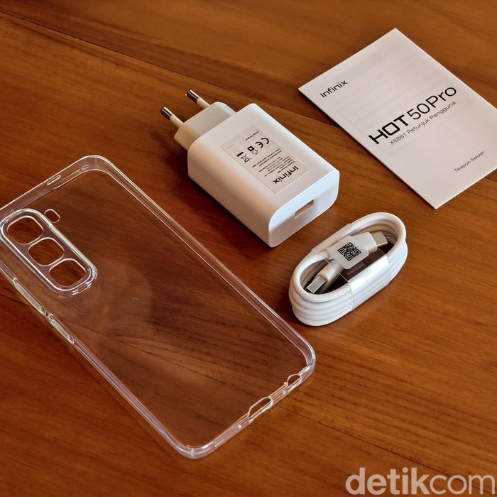 Infinix memberikan case silicon transparan, kabel data dan charger 33W. Foto: Adi Fida Rahman/detikiNET