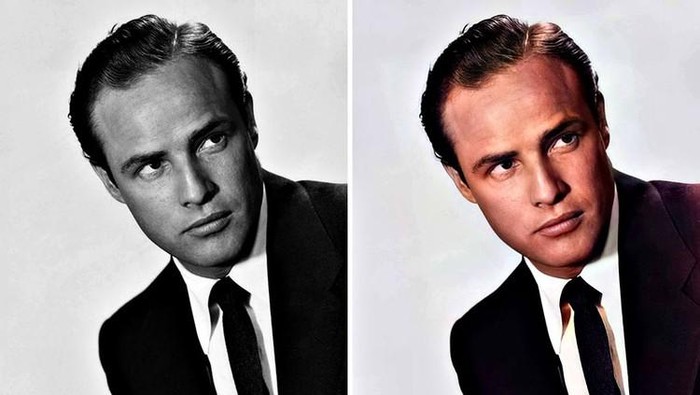 Banyak foto legendaris para selebriti Hollywood berupa foto hitam putih. Dibantu pakai artificial intelligence, jadilah foto berwarna yang kekinian.