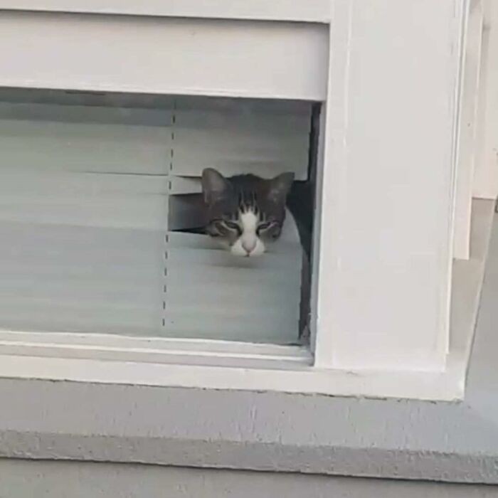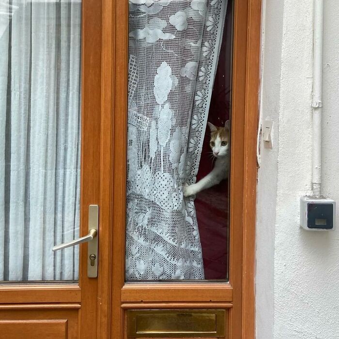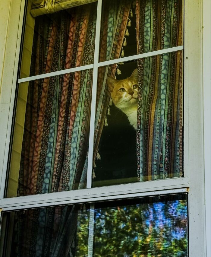 Pont of view lagi ngintip kucing tetangga makan makanan kucing terbaru. Foto: (Bored Panda).