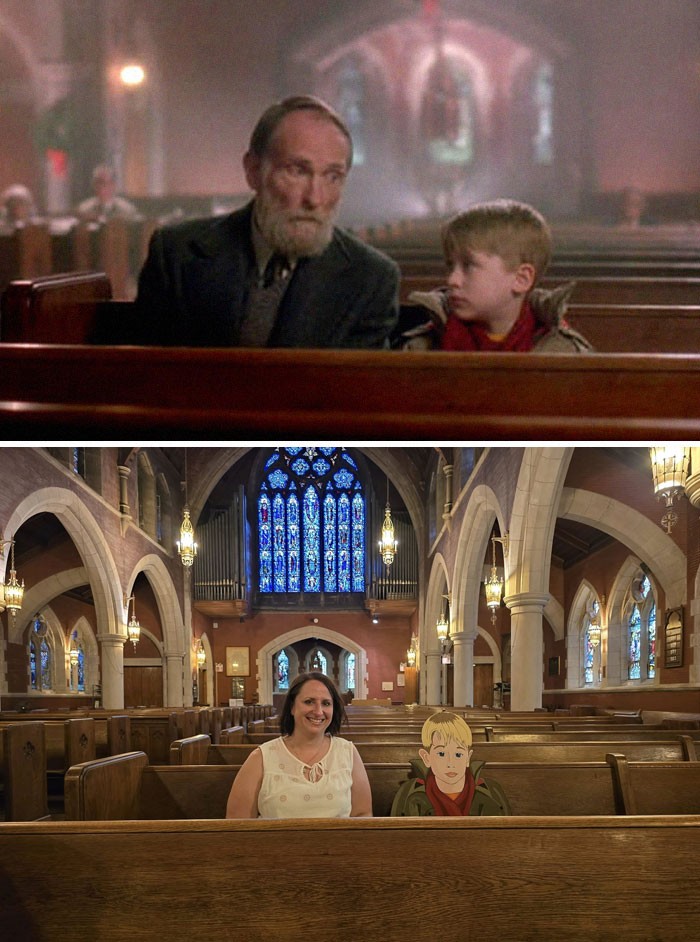 Home Alone (1990) - dulu dan sekarang (2024) Grace Episcopal Church, Illinois - 924 Lake Street, tempat seluruh adegan interior gereja difilmkan. Foto: Boredpanda
