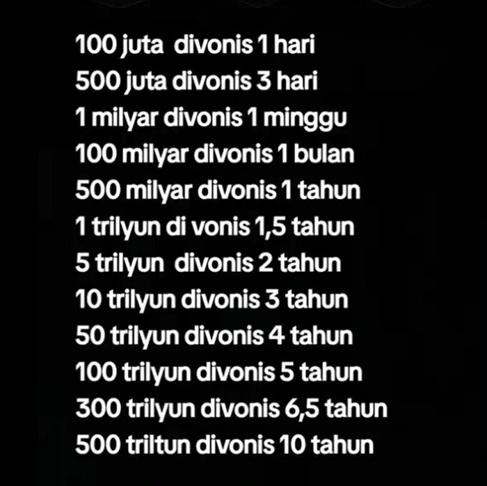 Hitungan uang korupsi dan vonis penjara. Foto: X.com