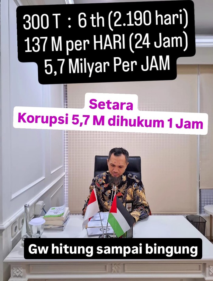 Hitungan korupsi dan durasi penjara, Foto: X.com