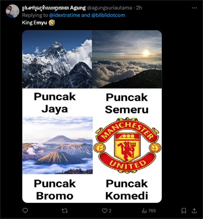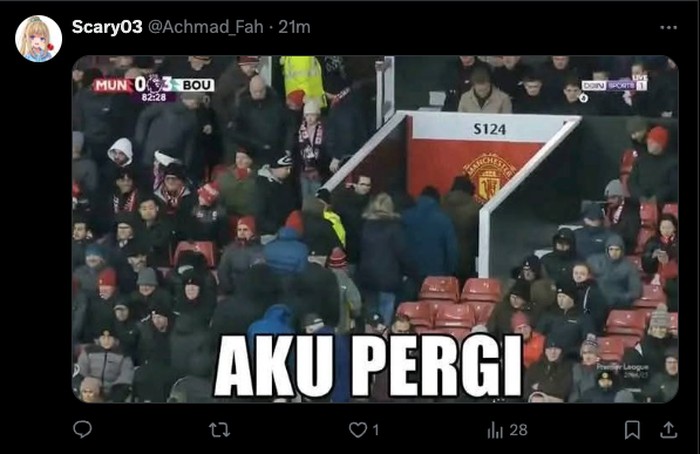 Man United kembali kalah. Ini jadi rekor buruk Setan Merah karena dalam sebulan sudah 6 kali dipermalukan lawan. Meme Berat Jadi Fans Emyu jadi bermunculan.