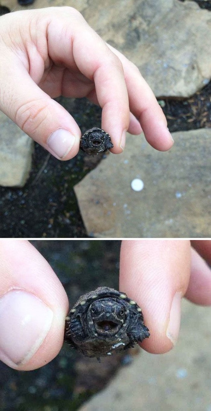 Gemas! Anak penyu pun bisa marah lho. (Foto: Boredpanda)
