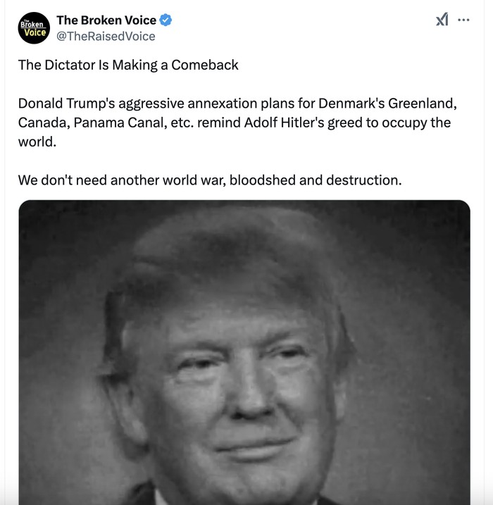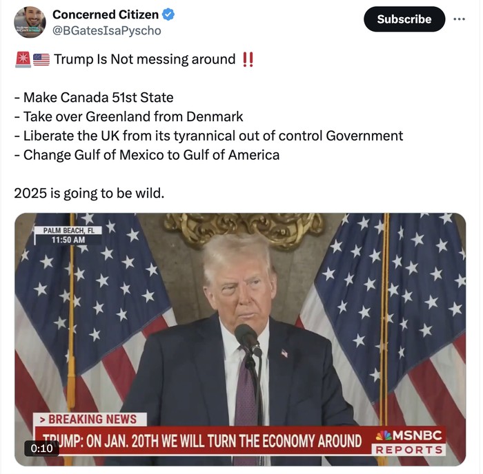 Trump pun dipandang sebagai calon diktator karena selain Kanada, dia juga ingin mencaplok Greenland dan Terusan Panama. Foto: X.com