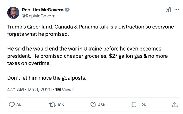 Akun ini berpendapat pernyataan kontroversial Trump adalah untuk mengalihkan perhatian dari janji-janji kampanyenya yang belum terpenuhi. Foto: X.com