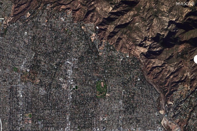 Kebakaran hutan yang melanda wilayah Los Angeles di negara bagian California, Amerika Serikat (AS), memaksa lebih dari 100.000 orang untuk meninggalkan rumah mereka. Foto: MaxarTechnologies